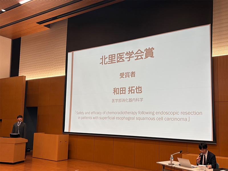 和田拓也先生(診療講師)が受賞した2025年度北里医学会賞贈呈式と受賞講演がIPE棟ホールにて行われました